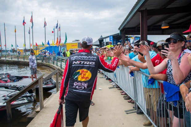 Kevin VanDam loads his Champ Sunday bag Kevin VanDam loads up his Championship Sunday bag. Photo by Joel Shangle.