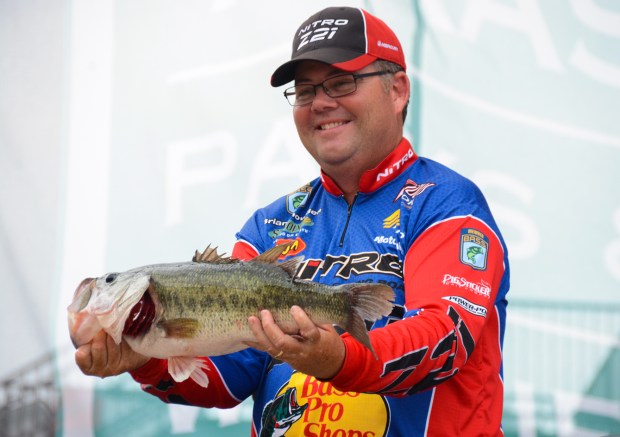 Brian Snowden brought a Texas lunker to the stage at the TTBC Former TTBC champ Brian Snowden with a Day 2 lunker. Photo by Joel Shangle.