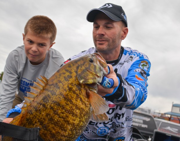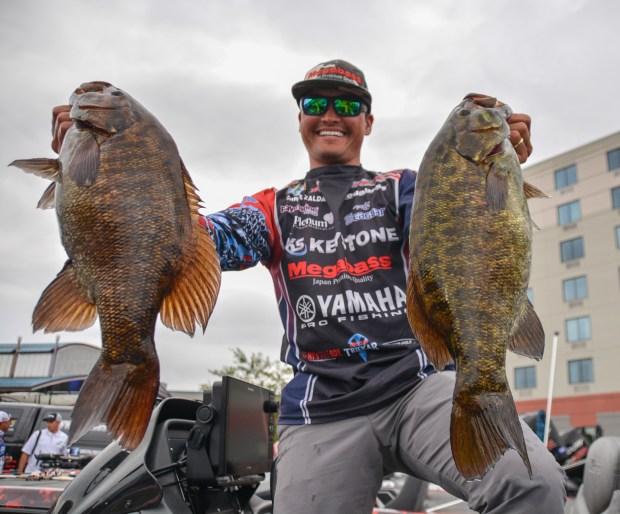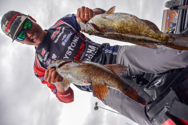 zaldain-two-fish-for-megabass-post Yamaha pro Chris Zaldain likely had to file an OSHA claim after hoisting 26 pounds around. Photo by Joel Shangle.