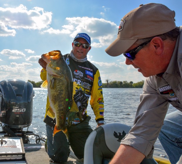 Andy Montgomery with 20-plus pounds on Okeechobee Daiwa pro Andy Montgomery in the thick of it with some big fish. Photo by Joel Shangle.
