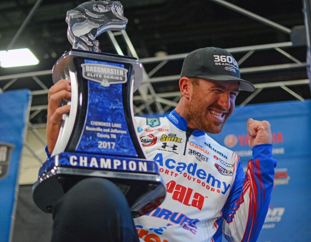 Jacob Wheeler with trophy-winning Cherokee smallies Gene Larew pro Jacob Wheeler found the right size smallies on Cherokee. Photo by Joel Shangle.