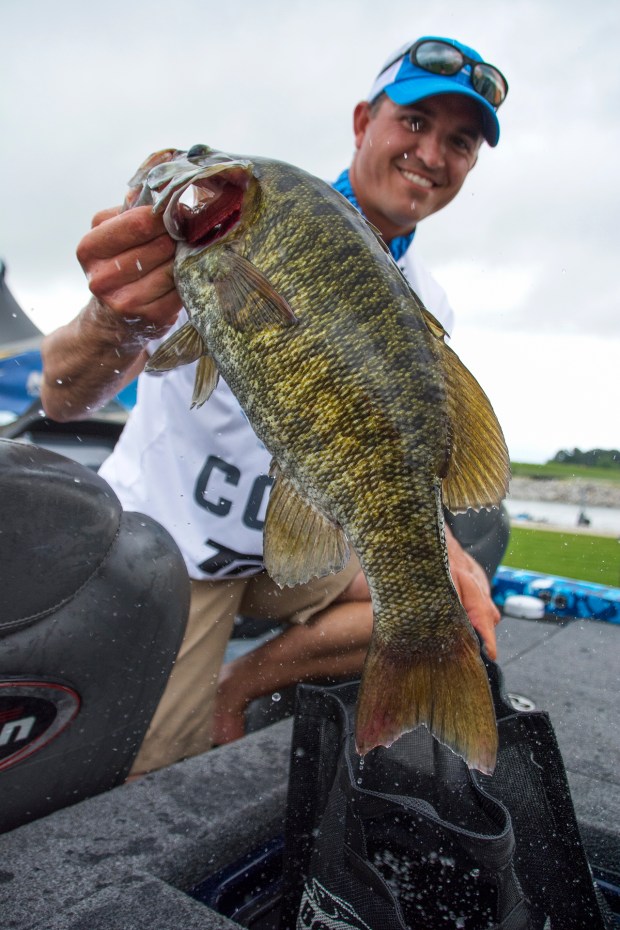 Casey Ashley found a hawg on Day 1 Livingston pro Casey Ashley whacked this brute smallie on Day 1. Photo by Joel Shangle.